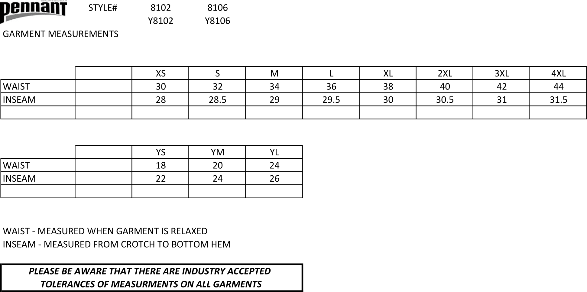 • Sizing Details